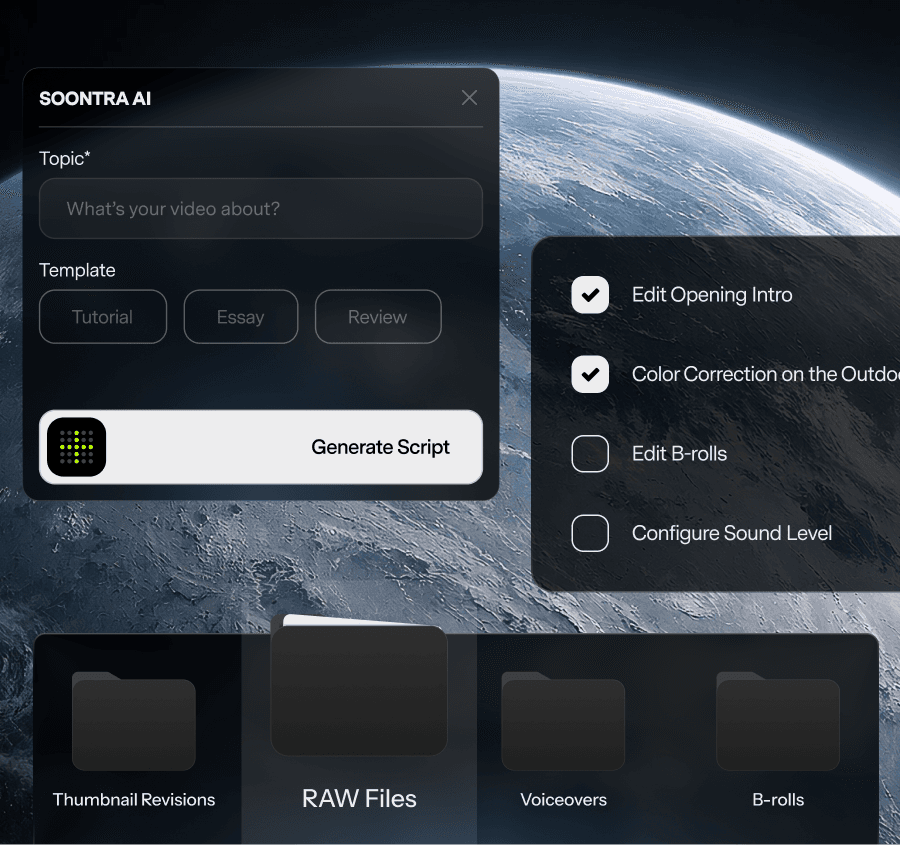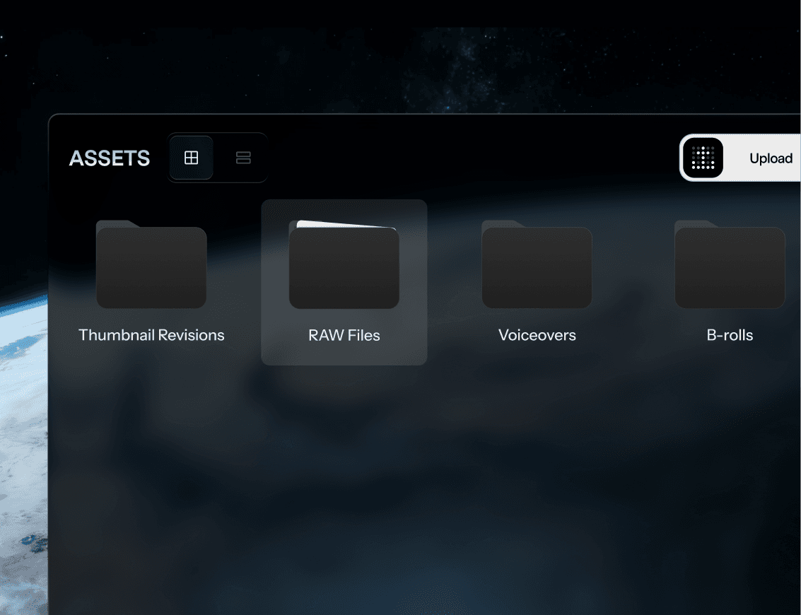 Thumbnails, scripts, B-roll, everything. Organized, version-controlled, and accessible to your entire team. Never lose a file again.